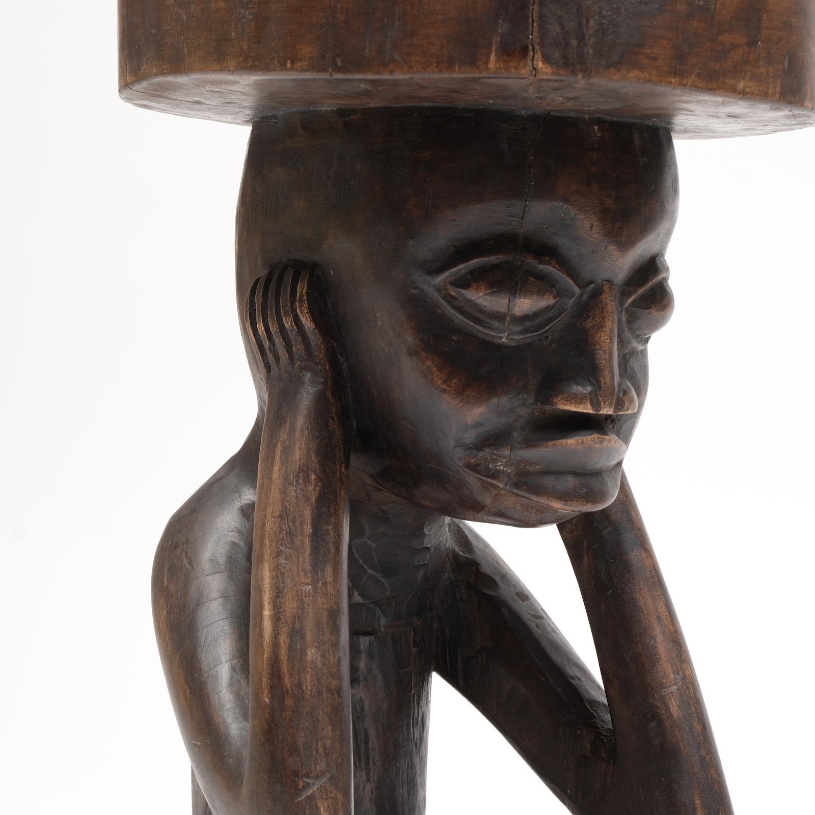 Bu tip oturan insan figürlü tabureler özellikle Batı ve Orta Afrika kabilelerinde törensel ve sembolik kullanıma sahip. Çoğunlukla Baule, Luba veya Dogon topluluklarında görülür. İnsan bedeninin taşıyıcı olarak kullanılması, bilgelik, toplumun yükünü omuzlama ve dayanıklılık anlamlarını taşır.