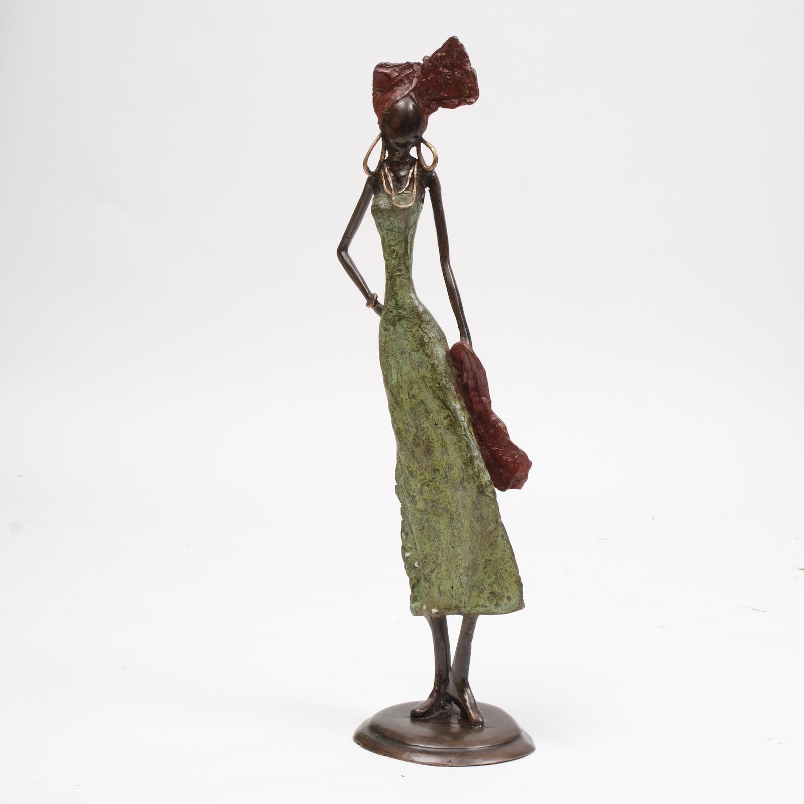 Afrika’nın dans eden kadınlarını simgeleyen bu figür, yaşam enerjisinin ve özgürlüğün bir yansımasıdır. Bronzun ağırlığına rağmen hafif bir zarafet sunar. Elbisesindeki dalgalı dokular, dansın ritmini hissettirir. Hem modern hem de geleneksel dekorasyonlarda sanatsal bir odak noktası oluşturur.