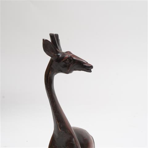 Form: Uzun boynu ve oturur pozuyla zarif zürafa figürü
