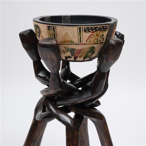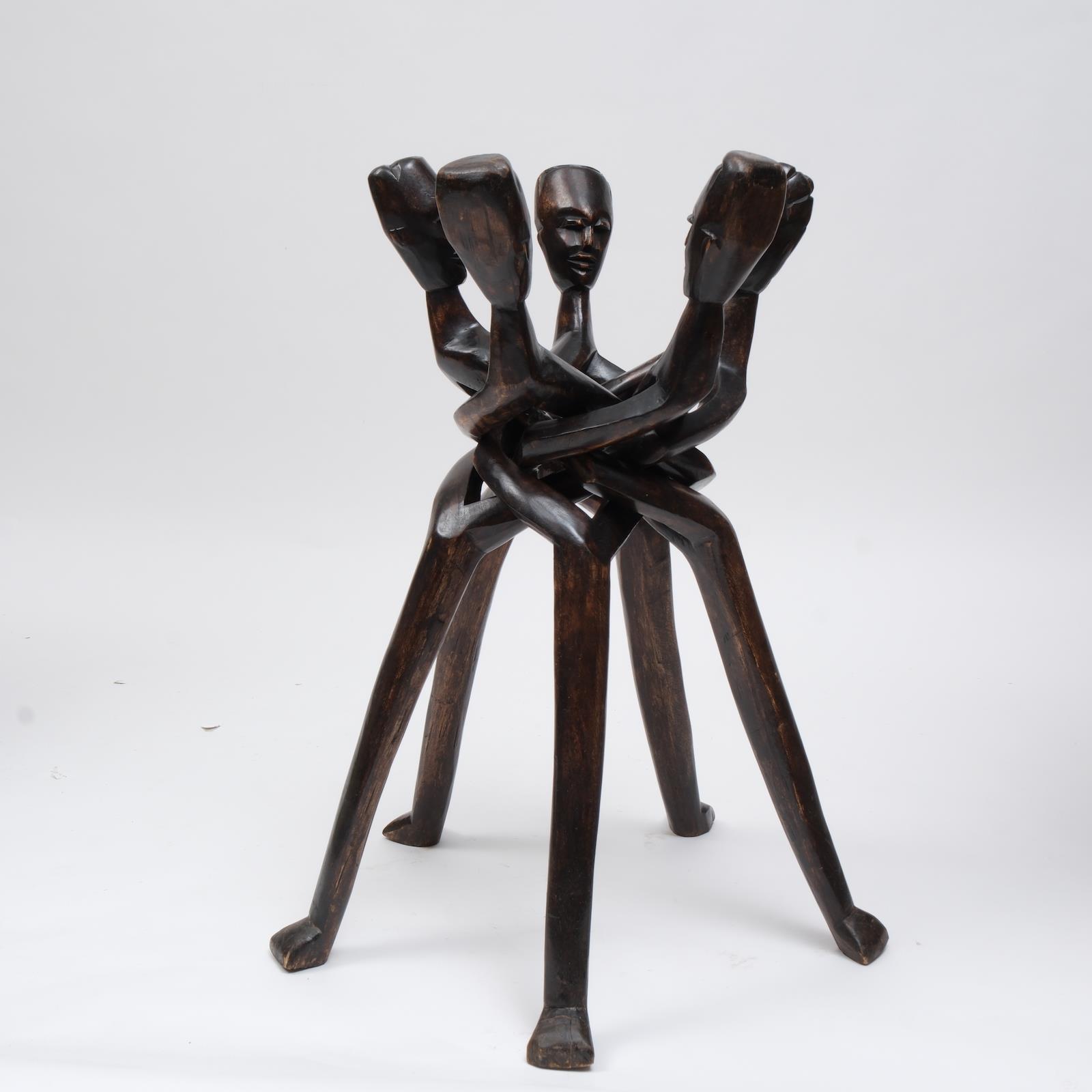 Form: Tek parça ahşaptan oyulmuş; figürler birbirine kenetlenen kollarıyla ayrılmaz bir bütün oluşturur.