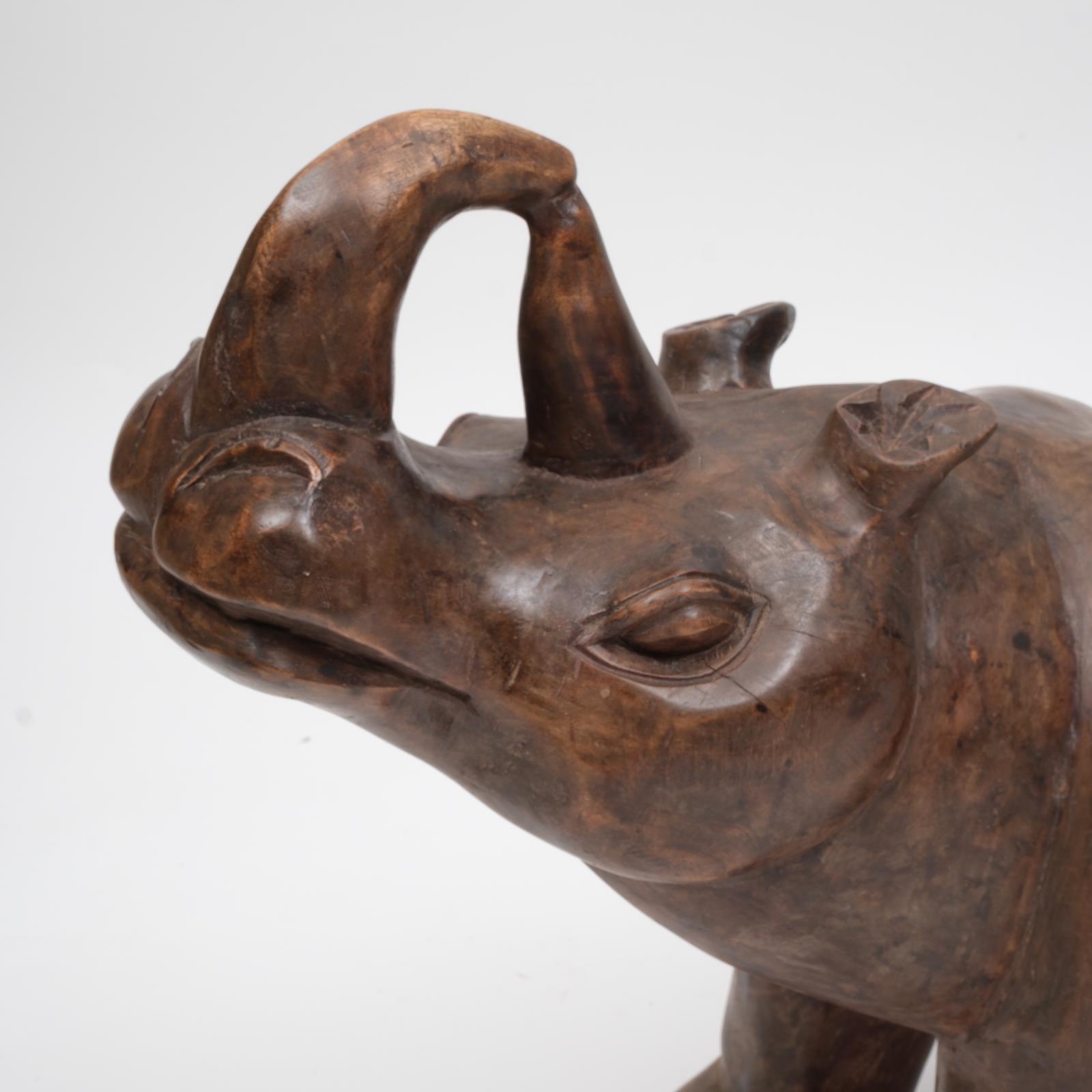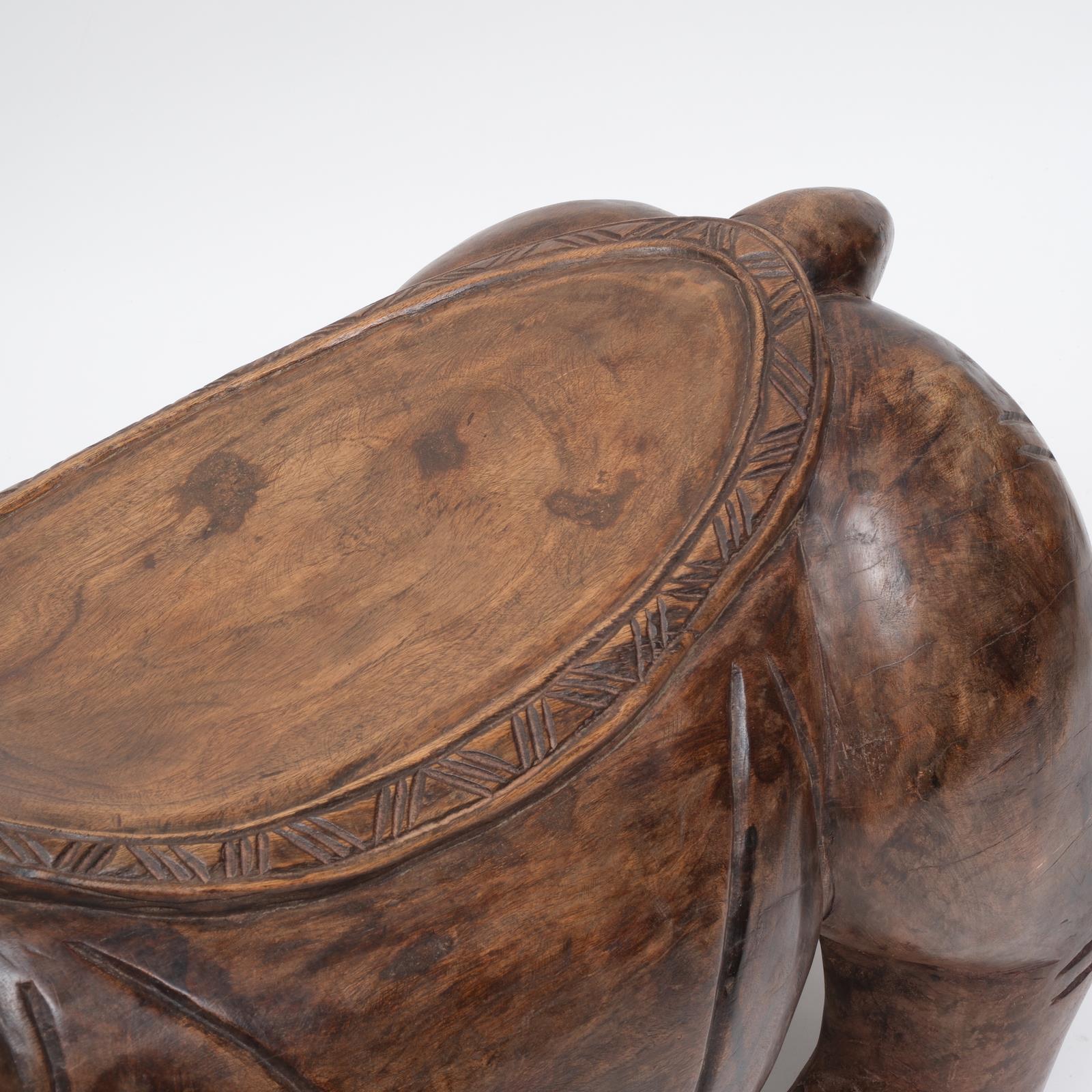 Yüz ve hortum bölgesindeki detaylar, Afrika oymacılığının tipik “stilize gerçeklik” yaklaşımını gösterir.