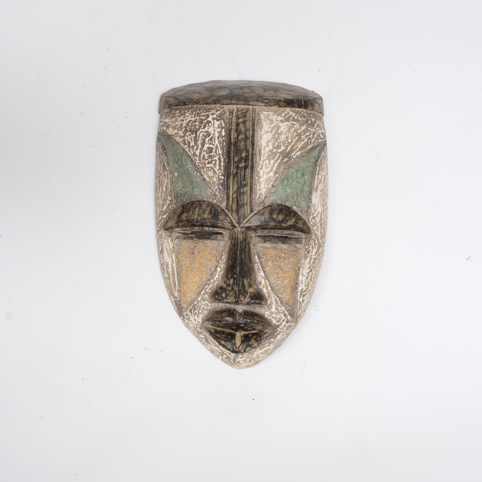 Geometrik yüz çizimleri, kehanet sembolleridir. Üçgen motifler geçmiş-şimdi-gelecek döngüsünü temsil eder. Bu maske yalnızca kehanet törenlerinde kullanılırdı ve taşıyan kişi kabile kahini sayılırdı.