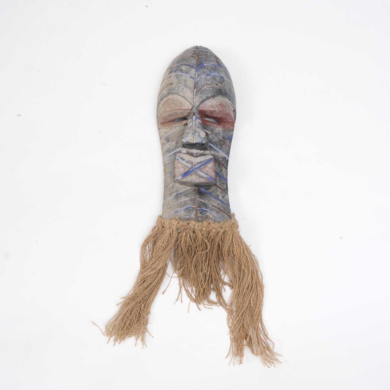 Köken Batı Afrika’da ritüel danslarda ve törenlerde kullanılan lif detaylı maskeler, özellikle ruhsal koruma ve topluluk ritüelleri ile ilişkilidir. Form Uzun yüz formu, geometrik boyamalar ve alt kısımda kullanılan doğal lifler maskeye hareket ve canlılık kazandırır. Anlam Lif detayları ruhun dünyaya bağını simgelerken, maskenin kendisi koruyucu bir varlık olarak kabul edilir. Törenlerde enerji ve dengeyi temsil eder.