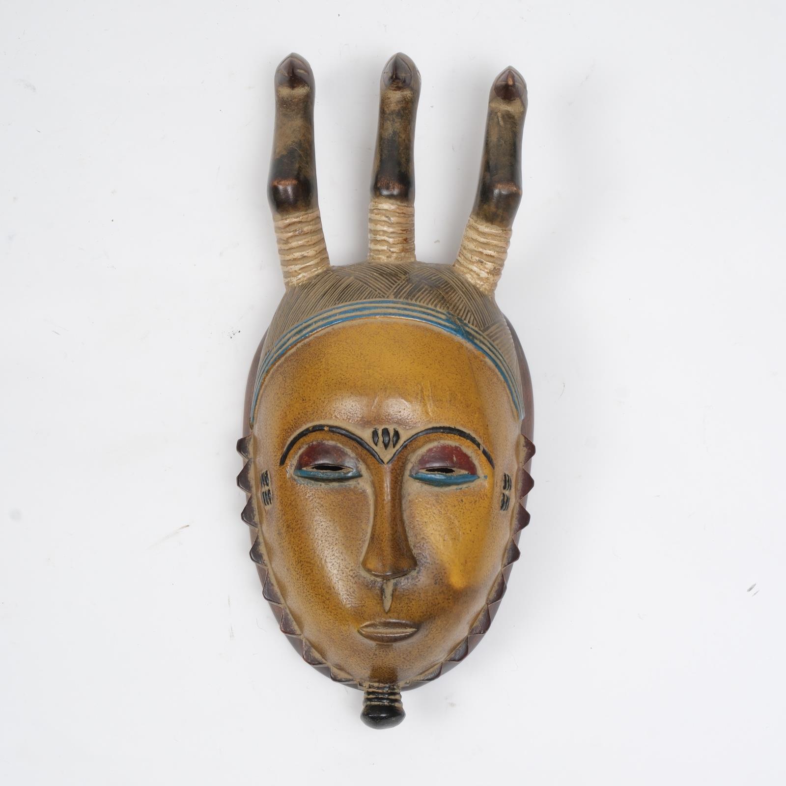 Köken Batı Afrika’da ruhsal koruma ve güç temalı maskeler arasında yer alır. Boynuz formu, birçok kabilede doğaüstü bağlantının sembolüdür. Form Maskenin üst kısmında yükselen üç boynuz, eserin karakterini belirleyen ana unsurdur. Parlak yüzey, ince işçilik ve dengeli yüz hatları güçlü bir estetik sunar. Anlam Üçlü form; zihin, beden ve ruh bütünlüğünü temsil eder. Aynı zamanda koruyucu bir enerji alanı oluşturduğuna inanılır..