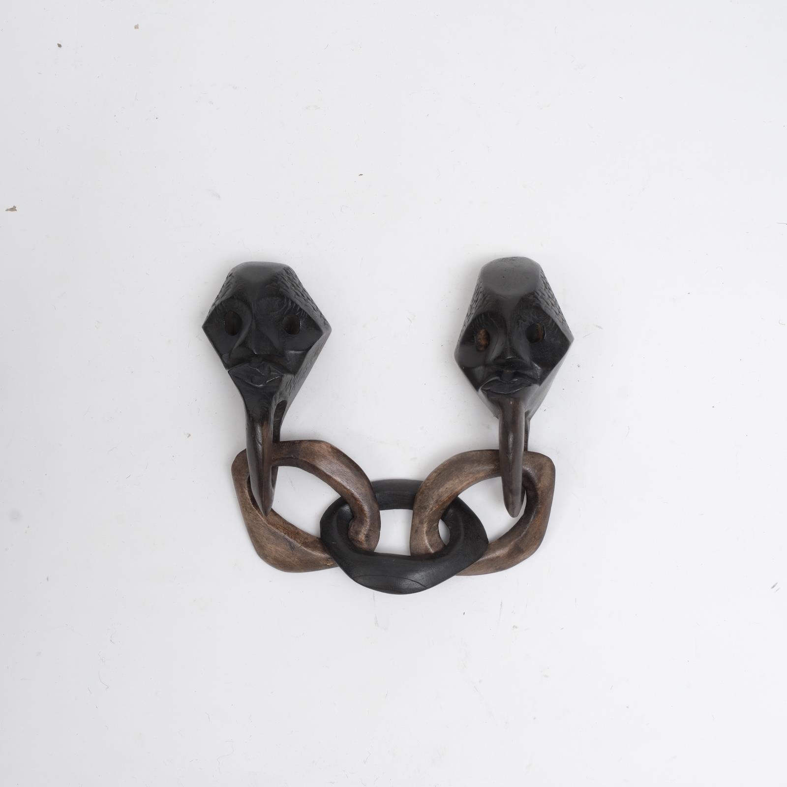 El oyma ahşaptan üretilmiş bu özgün Afrika heykeli, iki figürün birbirine bağlandığı sembolik bir kompozisyona sahiptir.